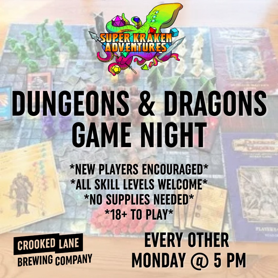 Every other Monday Super Kraken Adventures hosts a D&D night!