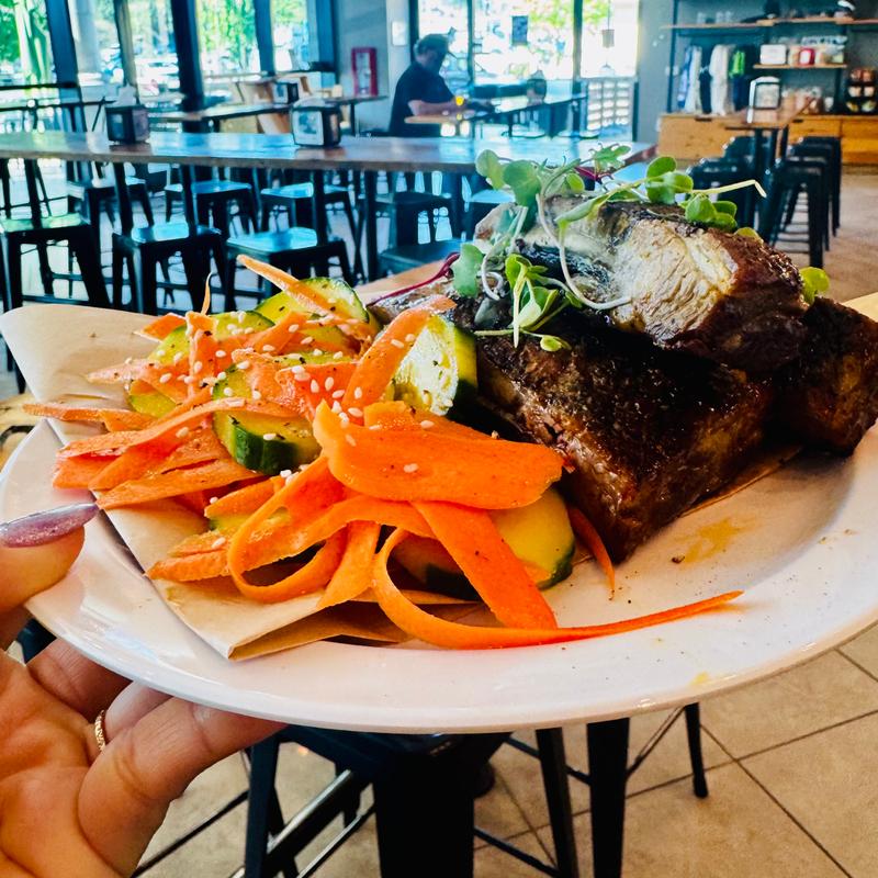 St. Louis Style Dry Rub Beef Ribs - Served with a Sesame Cucumber & Shredded Carrot Salad